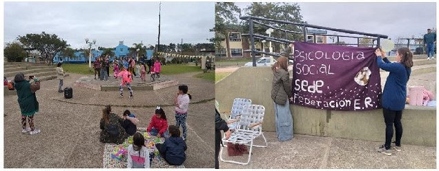 En la tarde de este martes 16 de julio la plaza Guarumba, al costado de la Escuela «Del Boyero» Nº44, fue el centro de las actividades realizadas por las alumnas de la sede Federación de la carrera de Psicología Social que se dicta cada sábado en el NIDO (Núcleo de Innovación y Desarrollo de Oportunidades) de calles Salta y Gaucho Rivero.