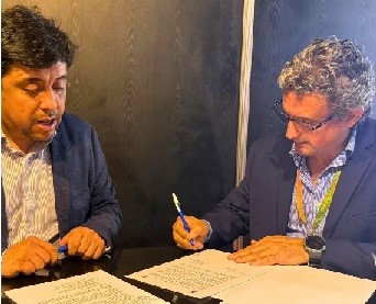 En el marco de la Feria Internacional de Turismo 2025, el presidente municipal Ricardo Bravo firmó este domingo un importante acuerdo junto al intendente de Tolhuin, Claudio Harrington.