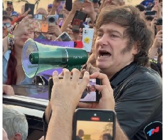 Arriba de una camioneta junto al gobernador Rogelio Frigerio, Milei agregó: “Estamos en un momento bisagra de la Argentina. Luego de semejante debacle y decadencia decidimos abrazar las ideas de la libertad en 2023. En ese sentido hemos bajado la inflación del 300% al 30%, hemos sacado de la pobreza a 12 millones de argentinos”.