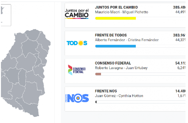 Nogoyá: Frente de Todos 44,63% – Juntos por el Cambio 44,26%. Diferencia: 100 votos.